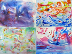 2時間目は曲のイメージをにじみ絵の手法で描きます。