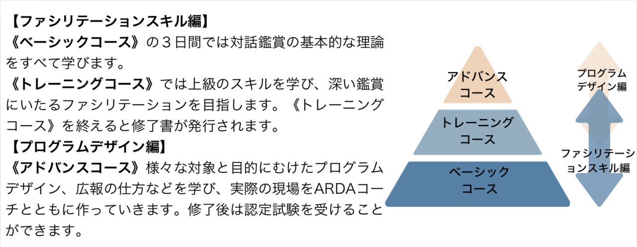 *2025年4月より「対話型鑑賞ファシリテーター養成講座」から「対話鑑賞ファシリテーター講座」へ名称を変更しました。新たに「トレーニングコース」と「アドバンスコース」を開設しました。
